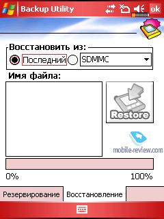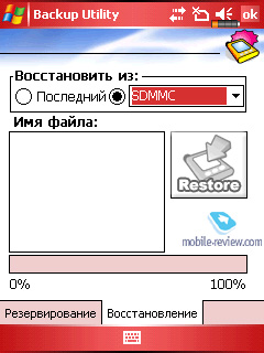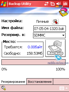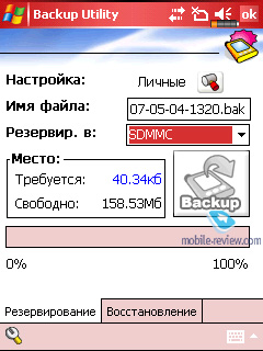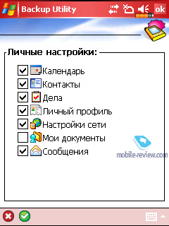 Backup Utility – утилита для резервного копирования данных. В WM 5.0 острая необходимость в данной программе отпадает, однако она интересна. Вы можете делать копии данных как вручную, так и по определенному расписанию. Последнее также составляется либо вручную, либо выбирается из нескольких вариантов. Есть возможность резервирования как всех данных аппарата, так и только выбранных пунктов.