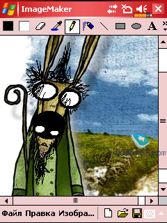 ImageMaker – программа для рисования. По своей функциональности напоминает простейший редактор операционной системы Windows – программу Paint. Для коммуникатора этой функциональности более чем достаточно. Помимо инструментов рисования возможна инвертация изображения, наклон или полный разворот на определенное число градусов. Также можно менять яркость и контрастность.