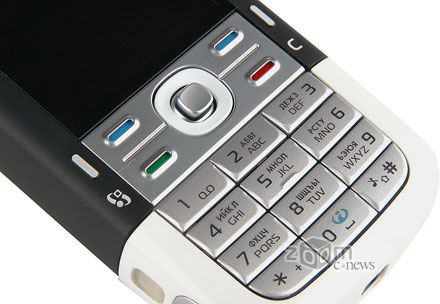 Клавиатура Nokia 5300, в целом вполне обычная, но кнопки вызова меню и удаления вынесены ближе к боковым граням