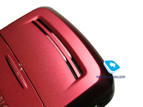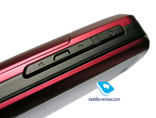 На левой боковой поверхности располагается клавиша включения/выключения аппарата, она же отвечает за вызов списка профилей. Немного ниже находится сдвоенная клавиша регулировки громкости, а еще ниже – интерфейсный разъем, который прикрыт пластиковой заглушкой, закрепленной на корпусе. Клавиши достаточно тонкие, но благодаря тому, что они довольно сильно выступают из корпуса, с ними удобно работать. Кнопки мягкие при нажатии, так что не исключены их случайные срабатывания (когда телефон сложен и лежит, например, в кармане), но максимум к чему это может привести, – к включению подсветки дисплея.