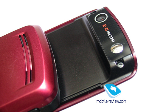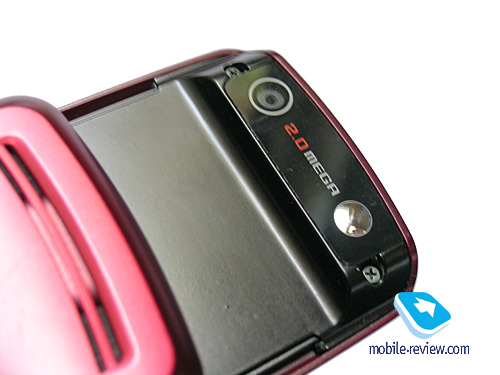 Аппарат оборудован 2 Мп CMOS-камерой без автофокуса, объектив которой находится на верхней половине слайдера на небольшом возвышении и доступен только при открытом телефоне. Здесь же, рядом с объективом, находится небольшое зеркальце для автопортрета.
