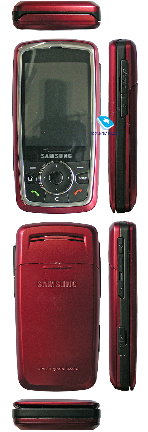 В данном обзоре речь пойдет о первой модели смартфона от Samsung на базе S60, а именно о Samsung i400. Как уже говорилось выше, аппарат выполнен в форм-факторе слайдер. Дизайн узнаваем, с первого взгляда на аппарат становится понятно, что это модель от Samsung, и его никак не перепутаешь со слайдерами от Nokia. Модель поставляется в одном цветовом решении, это сочетание черного с красным. Цветовое решение выбрано необычным, сразу становится понятно, что компания ориентирует данную модель в первую очередь для молодежи. Покрытие корпуса гладкое на ощупь, совсем не маркое. К сожалению, оно оказалось не очень стойким к появлению царапин, уже через некоторое время активного использования аппарата поверхность задней крышки покрывается небольшими царапинами, особенно по центру.