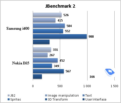 В тестах JBenchmark аппарат показывает хорошие результаты, немного ниже, чем у самых последних моделей смартфонов от Nokia, но выше их предшественников.