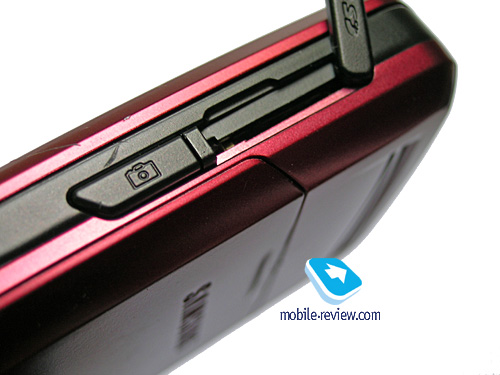 На правой боковой поверхности находится слот для карт памяти формата MicroSD, который также прикрыт пластиковой заглушкой, закрепленной на корпусе, а под ним расположена клавиша активации камеры. Аппарат поддерживает карты памяти объемом до 4 Гб.