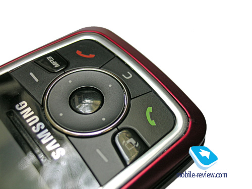 Навигационный блок клавиш располагается под экраном. Клавиши средних размеров, скомпонованы вплотную друг к другу, в целом проблем при работе с ними нет, ошибочные нажатия практически исключены. Четырехпозиционная навигационная клавиша с вписанной в нее кнопкой «Ок» достаточно крупная, к тому же ее края немного возвышаются над остальными клавишами, так что с ней также удобно работать.