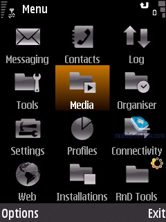 Как уже говорилось, аппарат работает под управлением операционной системы Symbian 9.2 S60 3d Edition Feature Pack 1. Подробно о ней вы можете прочитать в отдельном материале на нашем сайте.