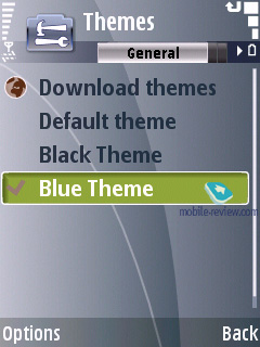 Темы, используемые в аппарате, слегка меняют внешний вид иконок главного меню, делая его более похожим на меню аппаратов Samsung. Предустановленных тем всего две и отличаются они только по цвету, одна из них черная, а вторая синяя, больше никаких отличий между ними нет.
