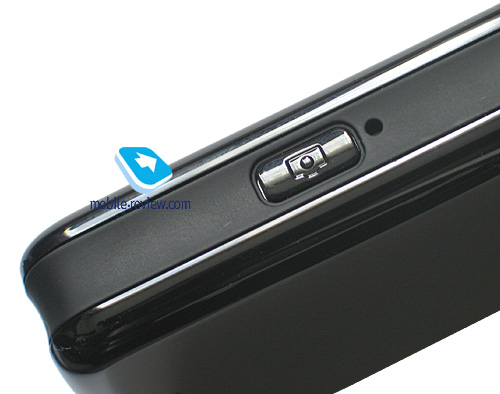 Чуть ниже разъема для гарнитуры находится кнопка активации камеры. Мягкое нажатие клавиши позволяет камере сфокусироваться, нажатие до упора – сделать снимок. Кнопка тугая. Чтобы сделать фотографию, приходится с силой давить на клавишу. Ситуация с Gigabyte t600 повторяется в точности. Возле кнопки камеры – утопленная в корпус клавиша мягкой перезагрузки коммуникатора.