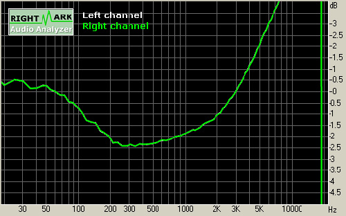 | Неравномерность АЧХ (от 40 Гц до 15 кГц), дБ: | +6.01, -2.43 | Плохо |