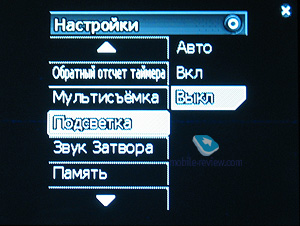 Настроек контрастности, резкости, оттенка, насыщенности в аппарате нет. Из дополнительных настроек доступны: таймер, отключение звука затвора, штамп даты и времени и некоторые другие.