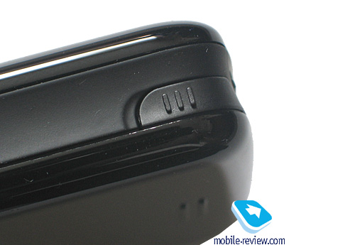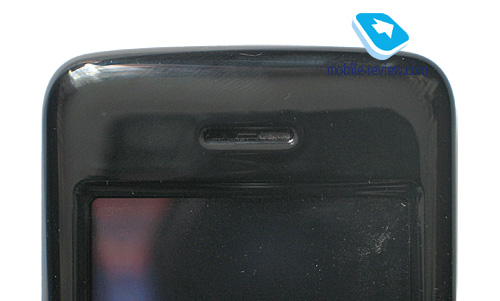 На лицевой стороне, в верхней части, расположен разговорный динамик, он забран мелкой сеткой. В место между сеткой и поверхностью корпуса забивается пыль. На левом ребре сверху – ползунок регулировки громкости, внизу – пенал для крепления пера. Ползунок немного выступает над поверхностью корпуса и имеет ребристую часть, так что его удобно использовать.
