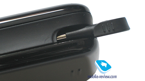 На правом ребре находится разъем для подключения гарнитуры. Он закрывается пластиковой заглушкой, которая в свою очередь закреплена на корпусе и откидывается. Разъем фирменный, но в комплекте с коммуникатором есть переходник на стандартные 3.5 мм наушники. Аплодисменты разуму отдела продаж.