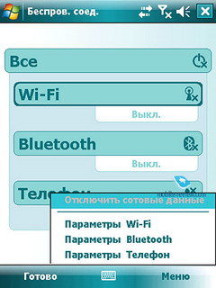 Встроенный модуль Bluetooth 2.0+EDR. В аппарате используются уже ставшие стандартом драйвера от Microsoft. Функциональность этого стека знакома нам по множеству других коммуникаторов. Рассмотрим поддерживаемые устройством профили и их назначение.