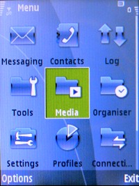 Программно новинка строится на Symbian 9.2 S60 3d Edition Feature Pack 1, о которой мы уже ни раз рассказывали в наших обзорах, поэтому упомянем лишь об особенностях переработанного в Samsung интерфейса. В аппарат заложено несколько тем, различающихся по цвету, и несколько меняющих внешний вид иконок в меню. Видов отображения главного меню всего два - список и матрица.