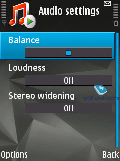 Эквалайзеры. Качество звука при смене эквалайзеров также заметно изменяется. Каждый эквалайзер 5-полосный, предустановлено их 6, каждый можно отредактировать по своему усмотрению, кроме звучания по умолчанию. Вот список эквалайзеров: Bass Booster, Classical, Jazz, Pop, Rock. В настройках звука также можно выбрать баланс каналов, расширение стереобазы (StereoWidening) плюс Loudness.