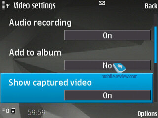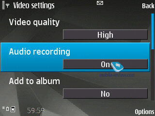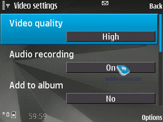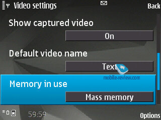 Видео телефон пишет с весьма посредственным качеством, доступно разрешение 320х240, 176х144 и 128х96 точек, частота кадров – 15 в секунду. Формат записи – 3GP; можно отключить звук, ограничений по длительности как таковых нет, если не выставить режим для MMS.