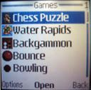 В этом разделе меню находятся игры и коллекция приложений. Игр всего 5 - Backgammon, Bounce, Bowling, Chess Puzzle, Water Rapid. Стандартные приложения включают характерный для Nokia и очень полезный Converter. Он служит для перевода величин Температуры, веса, длины, площади, объема и т.д. в различные системы измерения. Еще есть приложения World Clock и Portfolio.