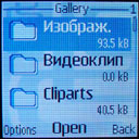 В разделе «Gallery» можно просматривать и назначать в качестве обоев или мелодий вызова различные файлы. Здесь же можно просматривать видеоклипы и клипарт, с которым можно комбинировать отснятые фото или отсылать через MMS.