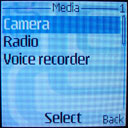 Пункт меню «Media» скрывает за собой доступ к камере, радио и диктофону. Камера имеет разрешение 640х480, поддерживает запись коротких видеоклипов и ночной режим съемки. Что касается качества – ничего примечательного нет, камера на уровне своих аналогов. Радио работает в стерео режиме и только при подключенной гарнитуре, но звук может выводиться и на громкую связь. С помощью диктофона можно записывать звук до 3 минут. Телефон имеет 4 мегабайта встроенной памяти.