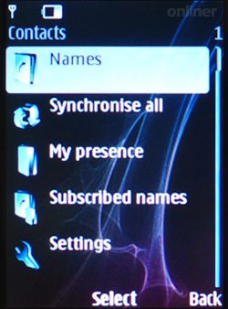 При добавлении нового контакта по умолчанию предоставляется всего три поля: имя, фамилия и номер. Несметное количество дополнительных полей становится доступно при нажатии на левую клавишу. В адресную книгу интегрирован сервис presence, который подобно IM-клиентам позволяет установить состояние абонента (отсутствует, занят, свободен и так далее). Не известно только, с какими телефонами и сетями эта функция совместима. Подобный функционал поддерживается в UMTS-сетях, однако Luna в них не работает.