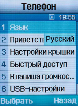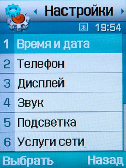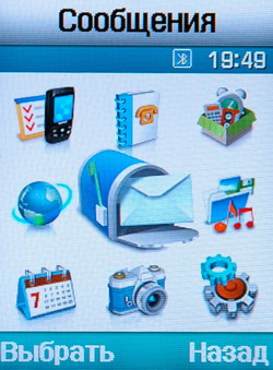 Вид меню традиционен, в виде таблицы с иконками. По подуровням меню можно перемещаться посредством боковых клавиш четырехпозиционной навигационной качели, не выходя на первый уровень с иконками. Расположение пунктов и подпунктов, программ и приложений интуитивно понятно и доступно. Навигация ничем не осложнена, даже при предвзятом подходе не удалось выявить затруднений при ориентировании в меню.