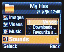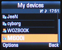 Файлы структурированы по следующим категориям: картинки, видео, музыка, звуки, прочее. Чтобы они были видны через Bluetooth, их надо наделить соответствующими правами. Передача данных по Bluetooth критически медленная, всего 20 кБ/с. Кроме того, наш тестовый телефон иногда отказывался соединяться с другими устройствами и принимать файлы. Скорее всего, это проблемы конкретного девайса, так как старшая модель Samsung U600 таких проблем не имеет.