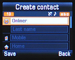 В телефонной книге помещается 1000 контактов (до 20 символов на название). Для каждого абонента можно заполнить следующие поля: имя, фамилия, мобильный, домашний, офисный, факс, другое, почта, фото, мелодия, группа, запись. Можно создать до 10 групп, каждой присваивается мелодия вызова и фото.