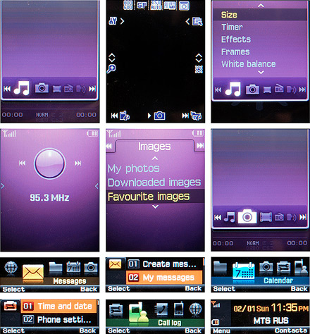 Сразу перейдем к вопросу, который, признаться, волновал нас больше всего. Насколько удобно работать с таким небольшим экраном, когда глаз уже привык к великолепию сравнительно крупных дисплеев мобильников? Оказалось, что наши опасения были напрасны, поскольку производителю удалось удачно модифицировать меню устройства, которое, конечно, выглядит необычно, но, по сути, мало чем отличается от тех интерфейсов, что используются в других телефонах. Конечно, первое время необычное расположение пунктов и иконок обращает на себя внимание, но это быстро проходит, поскольку все предельно логично и интуитивно понятно. Но все же есть определенные тонкости. К примеру, работать с текстом не очень удобно.