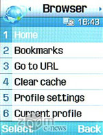 составляет 88 мегабайт, и этот показатель может быть увеличен засчет дополнительных карт памяти. Кроме того, через меню «Настройки» активируется Bluetooth и осуществляется возврат к заводским настройкам. Настройки дисплея позволяют менять обои, стиль главного меню, цветовую схему, яркость экрана, режимы подсветки и кодировку