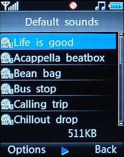 Пользователю доступно около 65 Мб внутренней памяти, 19 Мб из которой выделено для MMS и E-mail. Остальную часть заняли стандартные мелодии, статические и анимированные заставки для рабочего стола и скринсейверы