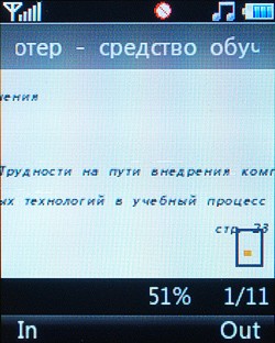 Телефон обладает программой для просмотра PDF-, ppt-, doc- и xls-файлов, но она предоставляет очень слабый функционал. Документы не форматируются для экрана, а пропорционально масштабируются. Текст можно увеличить, но появляется необходимость постоянно прокручивать файл по горизонтали, т. к. на дисплее видна только пара слов в строчке. Приложение можно использовать только изредка, оно никак не заменит полноценную программу на ПК, чего в принципе от телефона и не требуют.