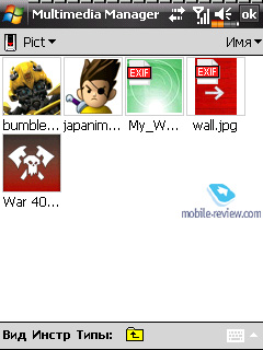 Multimedia Manager – утилита для просмотра изображений. От стандартной программы «фото и видео» отличается возможностью удобного пролистывания изображений, полноэкранным просмотром (не только в режиме слайд-шоу), а также возможностью передачи просматриваемого изображения в одну из программ для дальнейшего редактирования или отправки в MMS.