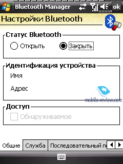 Bluetooth 2.0 + EDR, количество профилей заметно возросло по сравнению с предыдущей платформой (E-ten M500), все аналогично модели X500. Отметим, что E-Ten использует доработанный стек от Microsoft. Изменения касаются как функциональной части, так и оболочки для настройки и работы с Bluetooth. Посмотрим, какие профили реализованы в коммуникаторе X600: