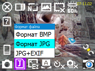 Также можно настроить формат файла (BMP или Jpeg), установку даты на снимок, таймер, некоторые другие параметры.