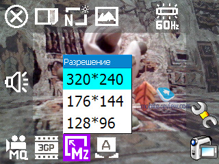 Видео записывается в формате 3GP c разрешением 320x240, 176x144 или 128x96. В целом настройки в режиме видео повторяют настройки в режиме фото. Из особенностей отметим: включение/отключение записи звука, выбор качества видео – высокое, среднее и низкое. Качество и разрешение записанного видео удручают: звук дрожит, разобрать речь в ролике невозможно, изображение также периодически подвисает или останавливается. Лично мне в голову не приходит область применения камеры с подобным качеством записи видео.