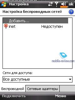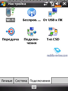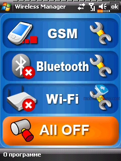 Для подключения кабеля синхронизации и зарядного устройства используется разъем miniUSB, для гарнитуры – типичный для коммуникаторов 2.5 мм разъем на боковом ребре. Для работы с беспроводными интерфейсами используется фирменная утилита от E-Ten – Wireless Manager. Программа имеет простой интерфейс и удобна в работе. В левой части приложения происходит запуск или отключение беспроводных модулей, а в правой – их настройка.