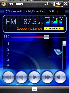 Для прослушивания музыки в WM традиционно используется плеер Windows Media Player. Качество звучания при использовании сторонних наушников (в нашем случае это наушники-вкладыши Sony MDR ED31) находится на среднем уровне, заметных изменений со времен glofiish X500 в этом плане нет. Остается повторить стандартную фразу о том, что коммуникатор вполне способен заменить собой дешевый китайский плеер. Если вы нетребовательны к качеству звучания, то роль музыкального проигрывателя X600 будет исполнять исправно.
