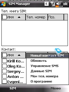SIM Manager – приложение для работы с контактами, текстовыми сообщениями, записанными в память SIM-карты. Позволяет копировать контакты по отдельности или группами в память аппарата и обратно в память SIM.