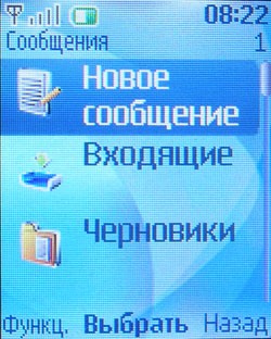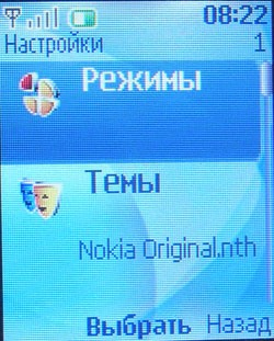 Главное меню представлено в виде матрицы (можно также представить меню в виде списка); оно состоит из десяти иконок и занимает два экрана. В целом, выглядит меню неплохо: все иконки крупные, чёткие, а для его оформления можно использовать фирменную "нокиевскую" тему или загрузить новые; телефон также поддерживает экранные анимированные заставки.