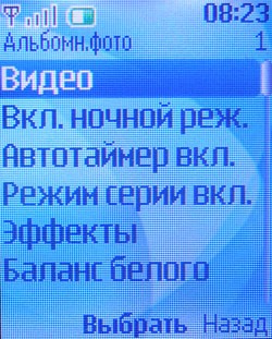 Видеокамера пишет в формате 3GP, качество роликов неплохое, настройки для записи идентичны таковым при съёмке фото.