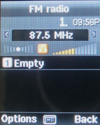 Радио в телефоне имеет память на 30 каналов, функцию ручного и автоматического поиска, а также возможность создавать напоминания для прослушивания заданных станций.