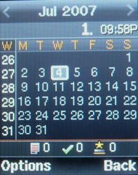 Экран, установленный в устройство, увы, не самого высокого качества: он способен отображать до 65000 оттенков, разрешение матрицы составляет 128 х 160 точек, а её физические размеры маловаты - 1,9 дюйма. Тем не менее, картинка на экране смотрится неплохо и на дисплей можно с лёгкостью устанавливать понравившиеся обои. На солнце TFT-матрица немного слепнет, но информация на ней все же остаётся хорошо различимой.