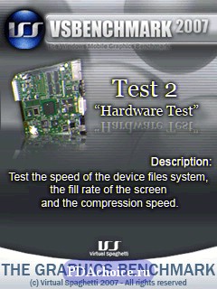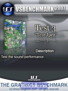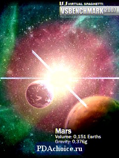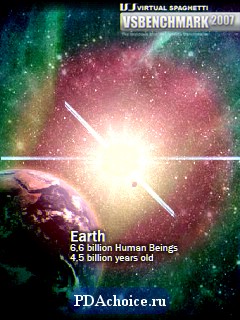 Тест VSBenchmark 2007. Новый тест, который вы теперь постоянно будете видеть в наших обзорах. Программа тестирует графику с помощью прогона графической сцены с солнечной системой, затем тестирует компоненты коммуникатора, скорость обработки JPEG изображения большого разрешения и воспроизведение звука.