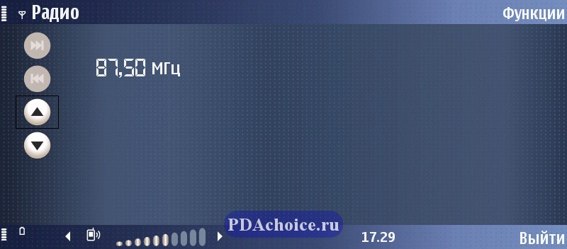 Коммуникатор Nokia E90 оснащен радио-приемником, который работает только при подключенных наушниках, используя их в качестве антенны. Устройство порадовало нас высоким качеством приема сигнала — практически все станции московского fm-диапазона «ловились» без помех и при передвижении по городу сигнал не ослабевал. Присутствует возможность перевода звука на внешние динамики, а в памяти устройства может храниться до 20 каналов.