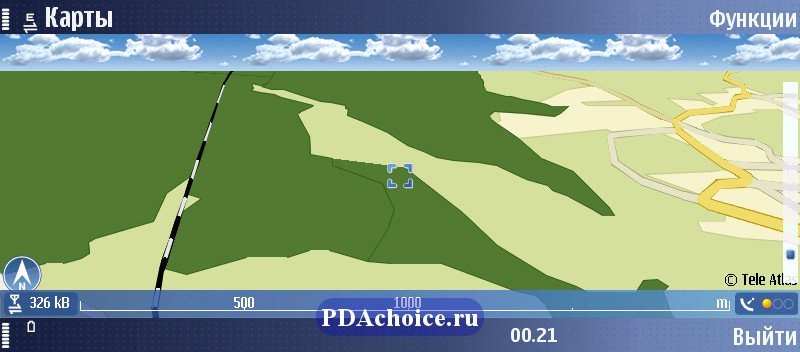 И навигационное приложение, и карты для Nokia E90 бесплатны, используются карты TeleAtlas. Что касается проверки работы самого модуля GPS, то здесь мы можем сообщить следующие данные: «холодный» старт произошел за четыре с половиной минуты, «горячий» же, как и положено хорошему навигатору, занимает всего несколько секунд.