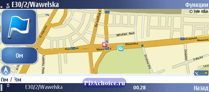 Аппарат оснащен встроенным GPS-модулем. Заметим, что с навигацией в устройстве ситуация неоднозначна. Начнем с того, что предустановленная навигационная программа Nokia Maps, в том варианте, в каком она присутствует на устройстве, не может работать в качестве полноценного навигационного приложения. Для того, чтобы сделать работу с GPS-навигацией привычной, нам пришлось загрузить программу smart2go с официального сайта www.smart2go.com.