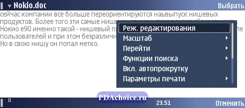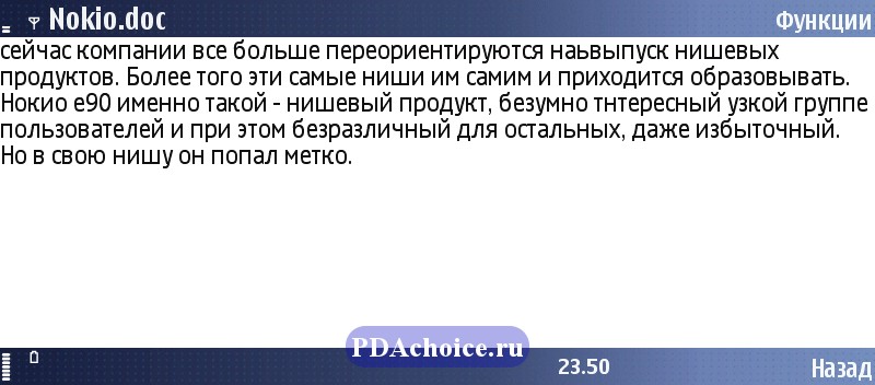 Так как Nokia E90 ориентирована в основном на бизнес-пользователей, офис-состовляющая реализована в аппарате на должном уровне.
