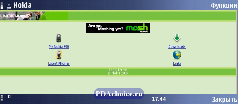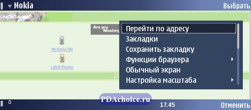 Браузер аппарата удобен в использовании, а в совокупности с большим экраном он делает коммуникатор отличным навигатором в сети интернет. После загрузки web-страницы на экране появляется курсор, управляемый навигационной кнопкой, с помощью которого легко выбрать нужную ссылку.