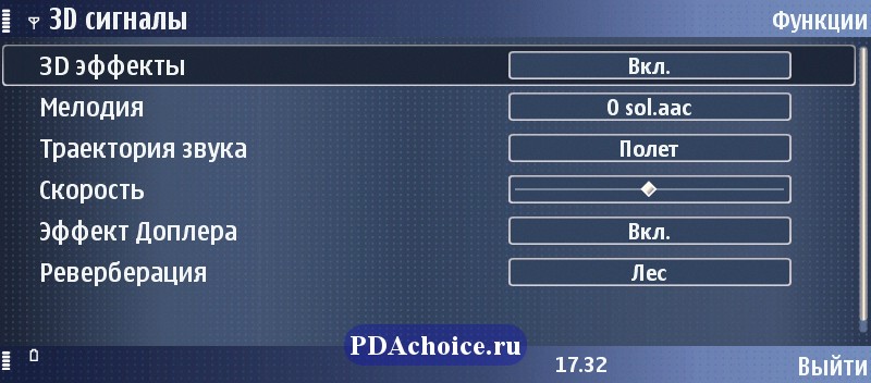 Телефонную составляющую делает интересней приложение «3D сигналы», которое позволяет устанавливать в качестве звонка мелодии с «объемным» звуком. Такое звучание ярко проявляется при использовании гарнитуры — звук, например, появляется в левом ухе и нарастает по направлению к правому, создавая впечатление прохождения сквозь голову. Или при выбранном эффекте «круг» источник звука как будто крутится вокруг вашей головы.