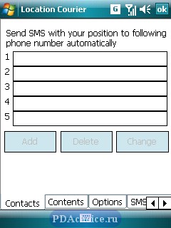 Location Courier. Данная программа создана для одной цели – пересылать по средством коротких текстовых сообщений (SMS) координаты, полученные с помощью GPS, а также заданный текст (по умолчанию - HELP!) как одному, так и нескольким адресатам (до пяти). Данная возможность будет полезна людям, попавшим в беду, или потерявшимся в лесу, например.